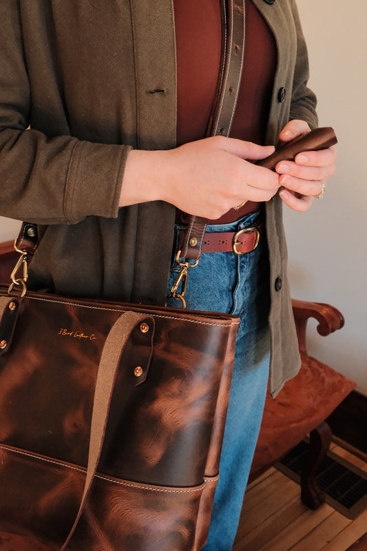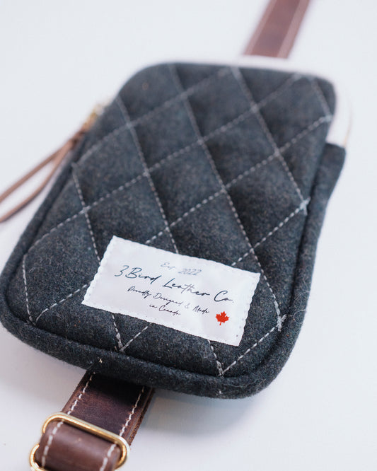 – Unweave the side strap to accept our Quilted Wool Phone Bag for the ultimate minimalist carry