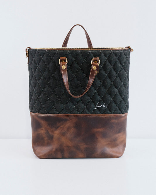 The Lark Convertible Backpack is a versatile, carry-everywhere backpack Made In Canada with Anian MFG’s recycled wool, ethically sourced full-grain leather, and solid brass hardware—materials chosen for their beauty, durability, and minimal impact.